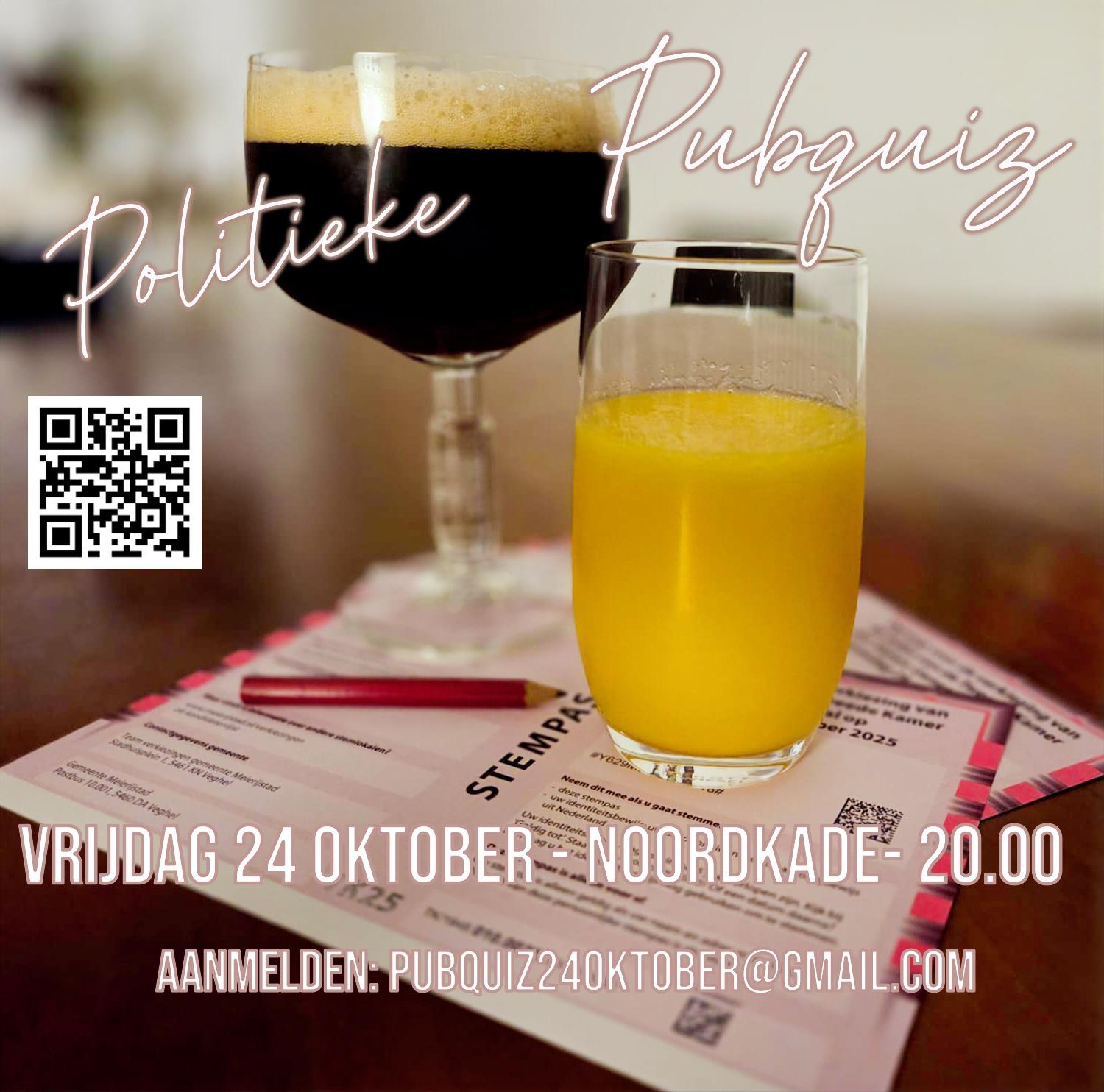 Op 24 oktober op de Noordkade in Veghel. Neem deel aan de politieke pubquiz en kom spelenderwijs meer te weten over de politiek en politieke standpunten. En het is ook gewoon leuk!